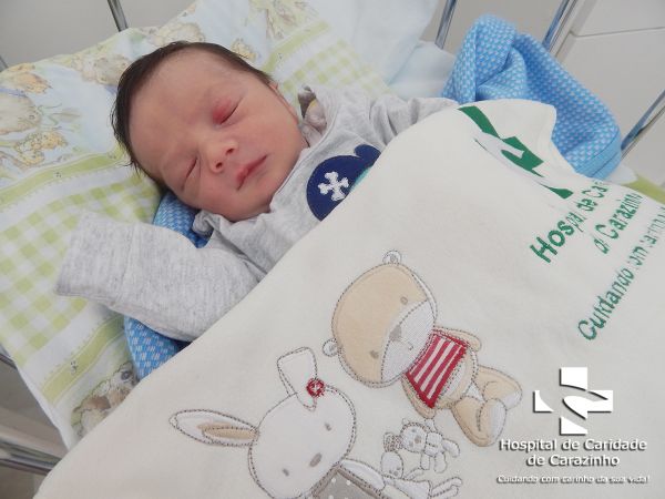 Olá. Eu nasci com 2.995 kg e 48 cm. Diógenes Saldanha Hoffmann é o meu papai e Lana Milena da Silva Rodrigues é a minha mamãe. Quem cuida de mim é o(a) Dr.(a) Maria Cecília (Pediatra). A equipe do Hospital de Clínicas de Carazinho parabeniza a família pela chegada do Santiago.