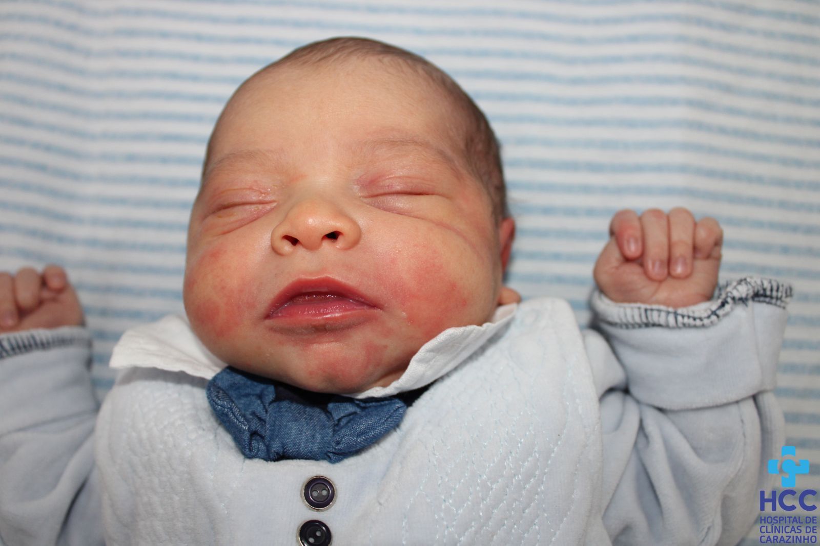 Olá. Eu nasci com 3.335 kg e 50 cm. KEVIN TUANI DOS SANTOS JACHINI é o meu papai e THAISSA ANNE DE MOURA é a minha mamãe. Quem cuida de mim é o(a) Dr.(a) FERNANDA DO NASCIMENTO (Pediatra). A equipe do Hospital de Clínicas de Carazinho parabeniza a família pela chegada do BENÍCIO.