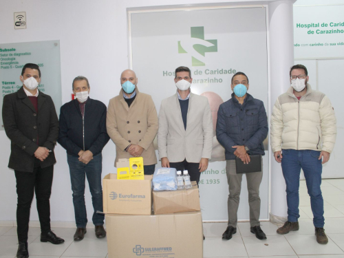 O Hospital de Caridade de Carazinho ainda recebeu da empresa Eurofarma, a doação de 100 unidades de aventais não estéreis, 50 tubos de álcool em gel e 20 packs para descarte de seringas. Na oportunidade os representantes da empresa Fabrício Rosa, Daniel Pauletto, João Oliveira e Rafael Monteiro realizaram a entrega e salientaram que essa ação faz parte de um projeto de nível nacional da empresa. “Por sermos de Carazinho e acompanharmos as dificuldades dos profissionais da saúde e do nosso Hospital no dia a dia, buscamos viabilizar essa ação para contribuir de alguma forma com a comunidade. Fizemos questão de ressaltar que somos solidários as dificuldades e aos desafios que o Hospital e a classe médica está enfrentando, e que estamos sempre dispostos a ajudar”, ressaltou Fabrício.