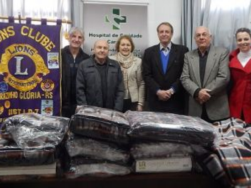 Foram disponibilizados nesta oportunidade 50 cobertores que serão utilizados para dar um melhor conforto aos pacientes em sua estadia no Hospital. Neste dia 26 de junho o Lions Clube Carazinho Glória comemora 49 anos de existência.