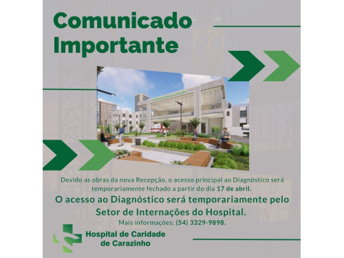 O Hospital de Caridade de Carazinho está com um novo projeto prestes a ganhar forma. As obras de ampliação do Setor de Internação, nova lancheria, juntamente com a revitalização da área externa em frente ao hospital, já iniciaram. As obras físicas estão orçadas em cerca de R$ 3 milhões, e estão sendo viabilizadas integralmente com apoio do deputado federal Márcio Biolchi (MDB/RS).
