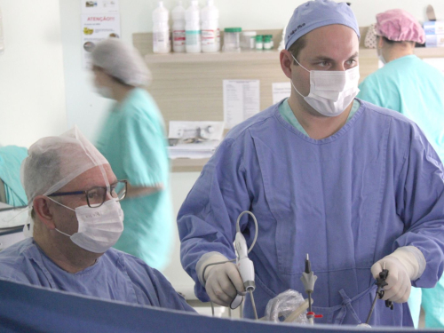 Para a 50º cirurgia bariátrica por vídeolaparoscopia, além o cirurgião Dr. Felipe Mallmann Piva, houve a participação do cirurgião Dr. Carlos Roberto Muneroli, da anestesiologista Dr. Silvia Cristina Lucio e da equipe de enfermagem do HCC.