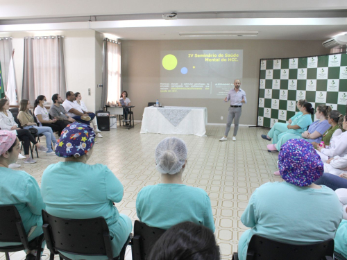 O palestrante, psicólogo Dr. Alessandro Alves, realizou um momento de conversa e troca de experiências das equipes. Ele falou sobre a importância da escuta e do autoconhecimento, para que o profissional também tenha a capacidade de poder ajudar o outro. “Nesta temática o hospital trouxe um olhar cuidadoso para os profissionais que realizam essa abordagem com os pacientes. É muito importante trazer uma reflexão sobre si no cuidado com o outro. Falamos do acolhimento, da forma como acolhemos e de se atentar mais nas falas das pessoas. Precisamos estar aptos a acolher, escutar e estar aberto para o que pode vir”.