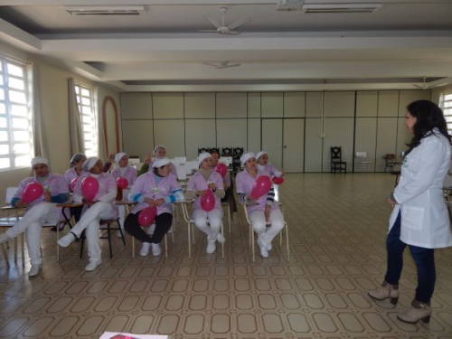 No início do treinamento, que contou com a presença das cozinheiras e copeiras que integram o setor, a psicóloga organizacional do hospital, Camila Jacoby, realizou uma dinâmica de grupo, utilizando balões, que reforçou a importância do trabalho em equipe.