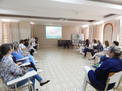 A capacitação foi ministrada pela enfermeira do HCC, Viviane Fassini, que atua junto à Comissão de Curativos da instituição de saúde. Na oportunidade, ela apresentou as diferentes tecnologias utilizadas para a confecção dos curativos, explicando de que forma elas auxiliam no tratamento das lesões. Também, pontuou os casos em que cada tipo de curativo é aconselhável e a maneira correta de aplicá-los, e apresentou situações práticas ocorridas no próprio HCC, destacando a evolução de determinados casos a partir da utilização correta desses materiais.