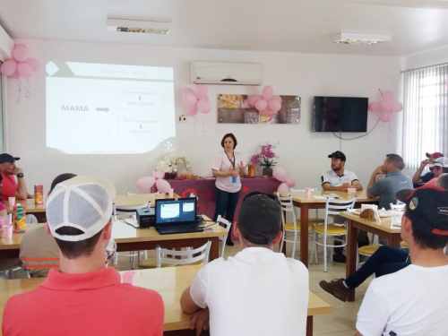 Na última semana, a enfermeira do serviço de Oncologia do Hospital de Caridade de Carazinho, Janete Ferla, ministrou uma palestra sobre Prevenção ao Câncer aos colaboradores da Monsanto do Brasil, estação de Não-Me-Toque.