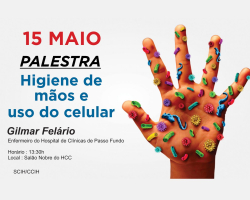 Palestra "Higiene de mãos e o uso do celular” acontecerá em 15 de maio, em alusão ao Dia Nacional de Controle de Infecção Hospitalar.