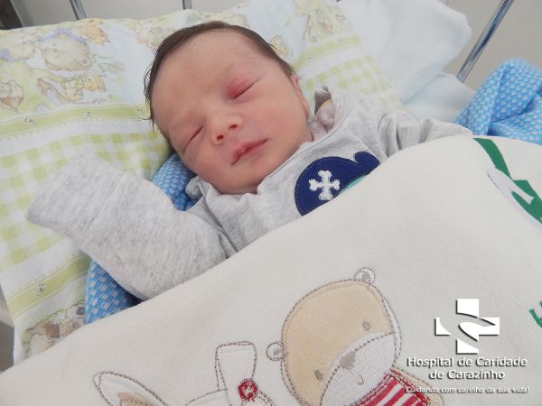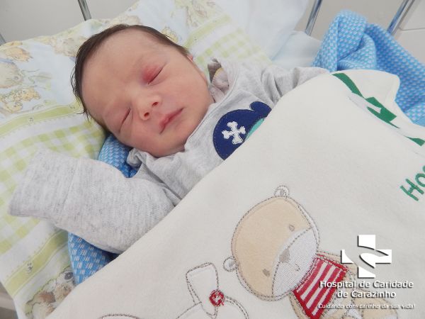 Olá. Eu nasci com 2.995 kg e 48 cm. Diógenes Saldanha Hoffmann é o meu papai e Lana Milena da Silva Rodrigues é a minha mamãe. Quem cuida de mim é o(a) Dr.(a) Maria Cecília (Pediatra). A equipe do Hospital de Clínicas de Carazinho parabeniza a família pela chegada do Santiago.