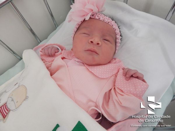 Olá. Eu nasci com 3.000 kg e 47 cm. Diogo dos Santos é o meu papai e Luana Aila Brum é a minha mamãe. Quem cuida de mim é o(a) Dr.(a) Sandra (Pediatra). A equipe do Hospital de Clínicas de Carazinho parabeniza a família pela chegada da Alana.