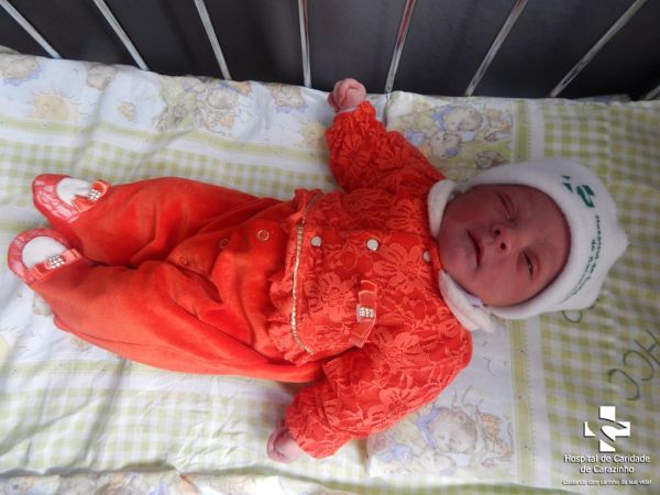 Olá. Eu nasci com 3.305 kg e 50 cm. Marcelo Helmutt Petry é o meu papai e Cleide Lucia dos Santos Machado é a minha mamãe. Quem cuida de mim é o(a) Dr.(a) Leonidio (Pediatra). A equipe do Hospital de Clínicas de Carazinho parabeniza a família pela chegada da Sara Isadora.