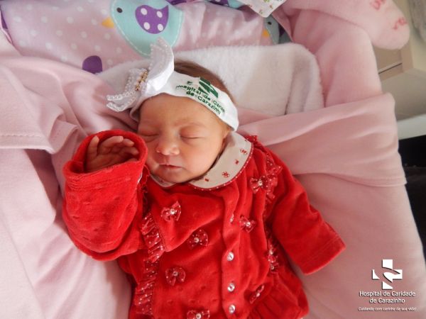 Olá. Eu nasci com 2.770 kg e 45 cm. Carlos Henrique Gonçalves é o meu papai e Marcielle Melania Ghellioni Gonçalves é a minha mamãe. Quem cuida de mim é o(a) Dr.(a) Maira (Pediatra). A equipe do Hospital de Clínicas de Carazinho parabeniza a família pela chegada da Maria Julia.