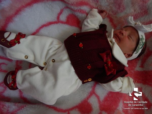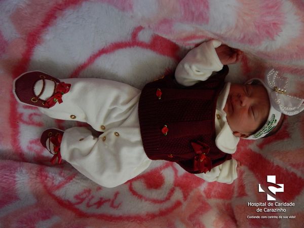 Olá. Eu nasci com 2.865 kg e 48 cm. Clauriomiro de Almeida Borba é o meu papai e Caroline Mociele Macedo Carvalho é a minha mamãe. Quem cuida de mim é o(a) Dr.(a) Sandra (Pediatra). A equipe do Hospital de Clínicas de Carazinho parabeniza a família pela chegada da Livia Carvalho.