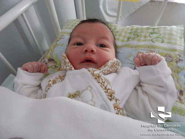 Olá. Eu nasci com 3.460 kg e 50 cm. Cristiane Palhano Chaves é a minha mamãe. Quem cuida de mim é o(a) Dr.(a) Lúcia (Pediatra). A equipe do Hospital de Clínicas de Carazinho parabeniza a família pela chegada da Evylin.