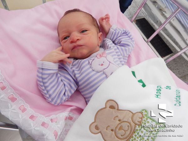 Olá. Eu nasci com 3.010 kg e 47 cm. Gregory Martins de Lima é o meu papai e Jéssica dos Santos Ribas é a minha mamãe. Quem cuida de mim é o(a) Dr.(a) Sandra (Pediatra). A equipe do Hospital de Clínicas de Carazinho parabeniza a família pela chegada da Maria Emanuela.