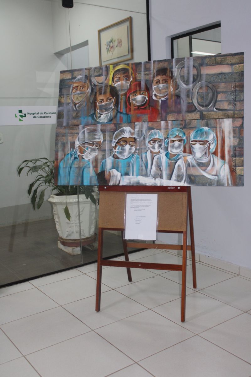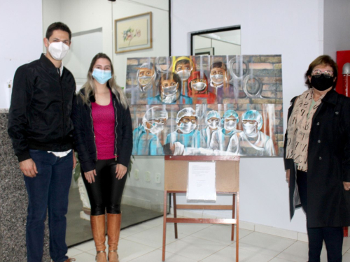 Na manhã de segunda-feira (23), o Hospital de Caridade de Carazinho recebeu duas obras de arte da artista plástica e mestre em educação, Ilse Ana Piva Paim. As telas, de 42 X 130 centímetros cada, relatam os desafios dos profissionais da linha de frente diante da Pandemia e fazem homenagem as equipes da instituição de saúde e aos pacientes que partiram em decorrência da Covid-19.