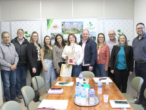 Na manhã de sexta-feira (06) o Hospital de Caridade de Carazinho, através da Direção e Administração, representando os cerca de 600 colaboradores da instituição, realizaram uma singela homenagem a Secretária de Saúde de Carazinho, Anelise Almeida, pelos inúmeros serviços prestados a instituição de saúde. Anelise deixará o cargo dentro dos próximos dias e participou da reunião no HCC, com o objetivo de alinhar projetos em andamento.