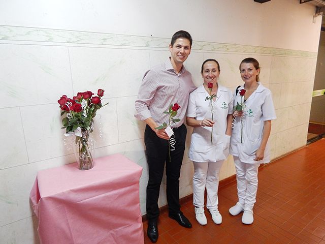As flores foram entregues nos setores do HCC pelo administrador Felipe Sohne, pelo diretor geral, Hélio Lütz, e pela gerente institucional, Larissa Rosa. A homenagem acontecerá, também, nos turnos da tarde e da noite.