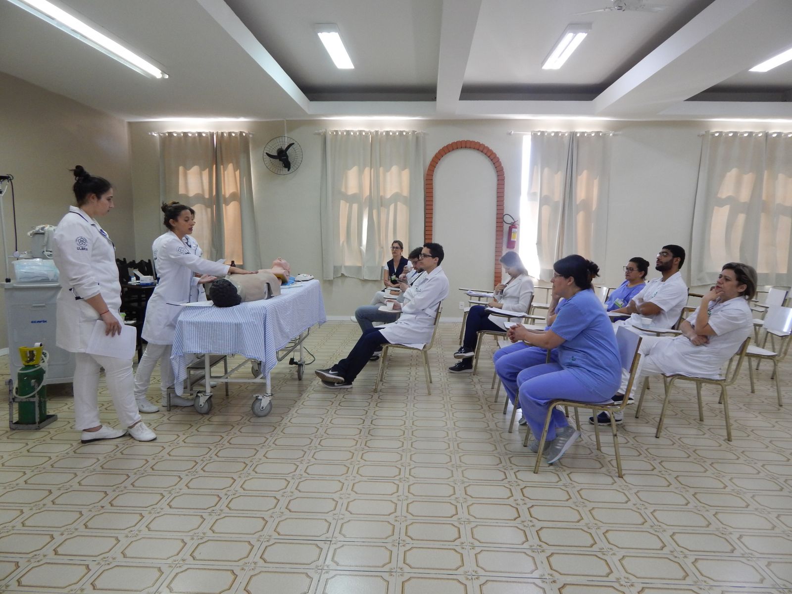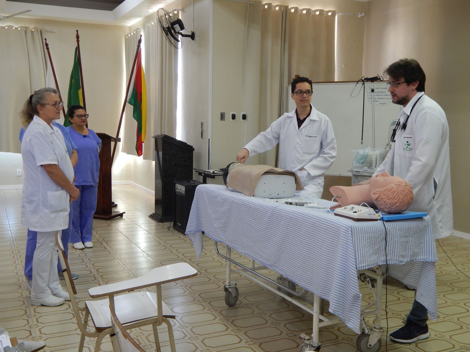 Capacitação foi ministrada pelo médico clínico geral, Dr. Frederico Alt, pelo médico residente, Dr. Gunnar Kussler, pela enfermeira do setor, Grasiela Negri, além das acadêmicas do Curso de Enfermagem da Universidade Luterana do Brasil – ULBRA, campus Carazinho, Mariana Vargas, Mariane Braga e Zemilda Correa.