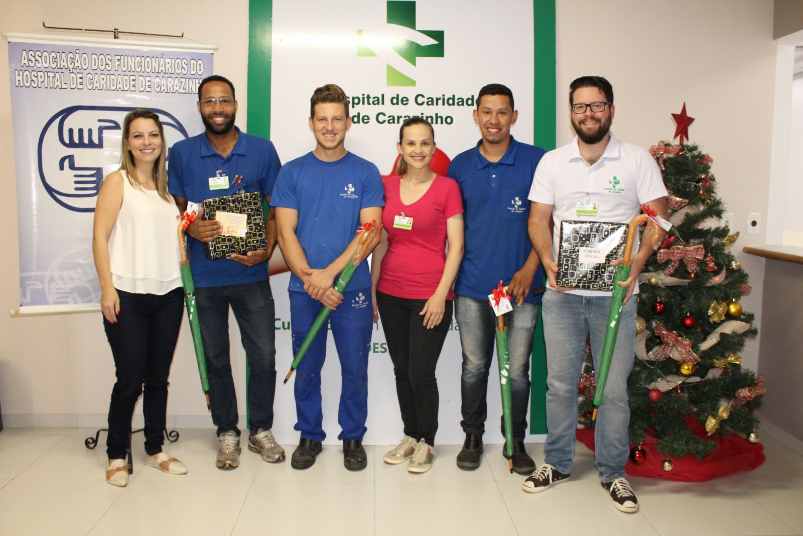 Faltando poucos dias para o Natal, os colaboradores do Hospital de Caridade de Carazinho foram presentados com guarda-chuvas personalizados.