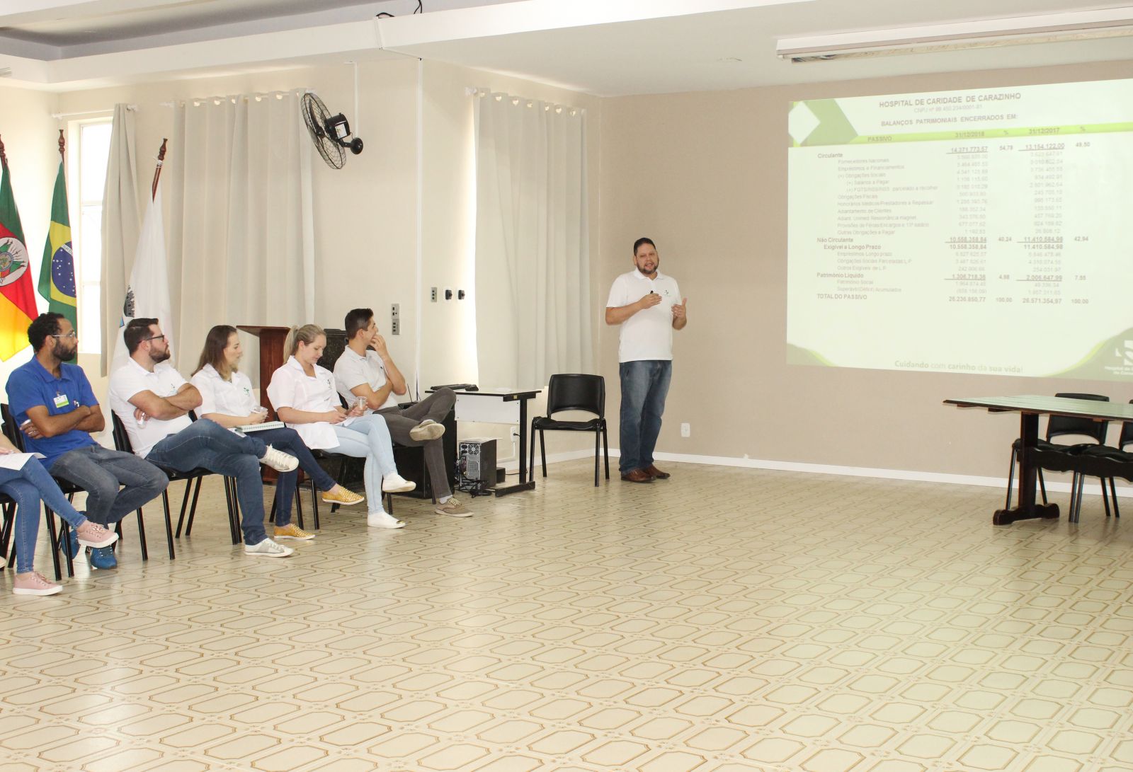 Os profissionais que atuam nos setores da administração, nas gerências e os supervisores do Hospital de Caridade de Carazinho participaram, nesta quinta-feira (04), da reunião de capacitação do mês de abril.  Durante o encontro, foram apresentados os índices de atendimento e as ações desenvolvidas no HCC em 2018 – que demonstram a qualidade do serviço ofertado pela instituição de saúde.