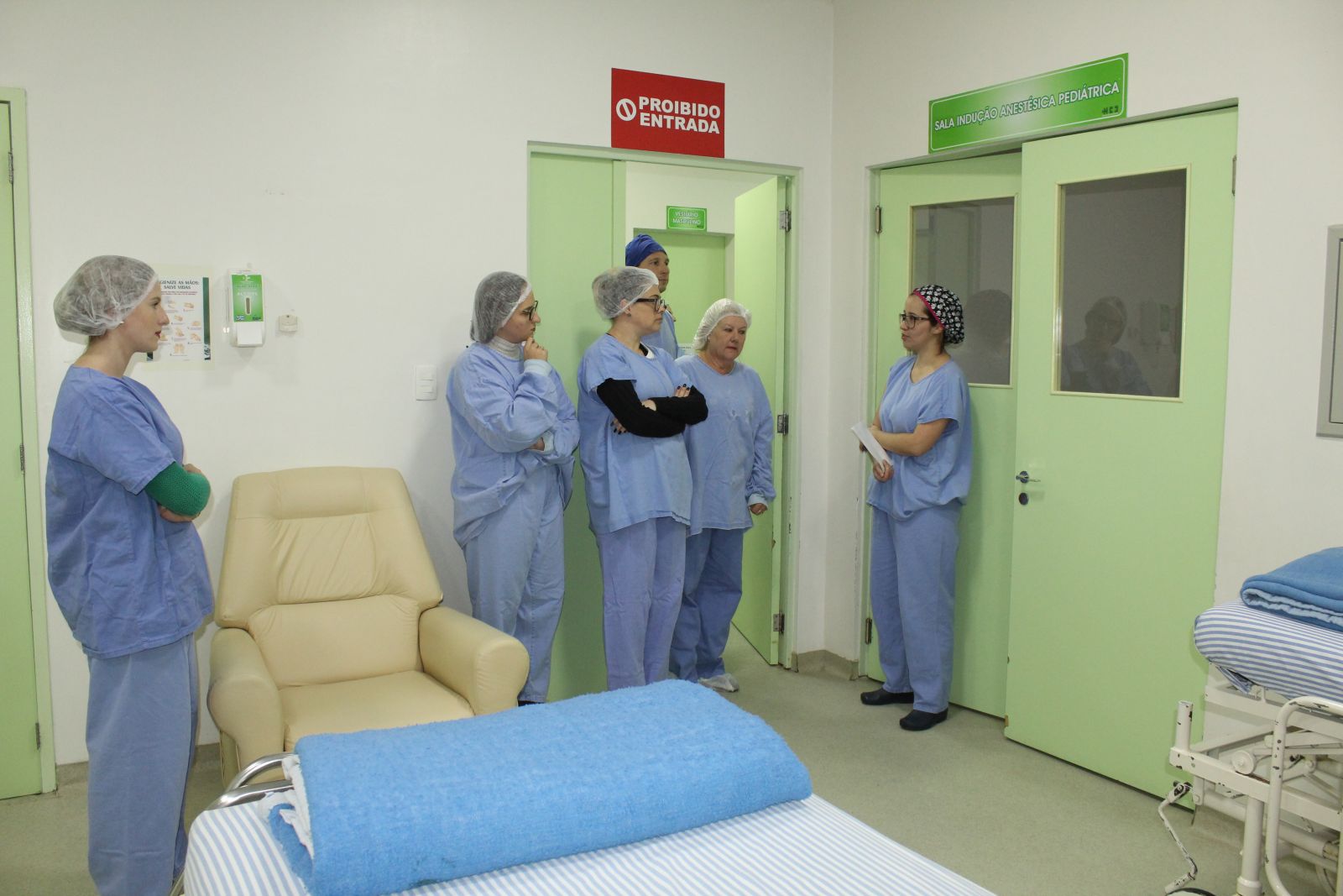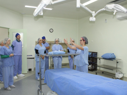 Após as explicações teóricas, o grupo visitou o Centro Cirúrgico, o Centro Obstétrico e o Berçário do HCC, a fim de visualizar, in loco, a estrutura e os procedimentos relatados, reforçando, assim, as informações transmitidas.