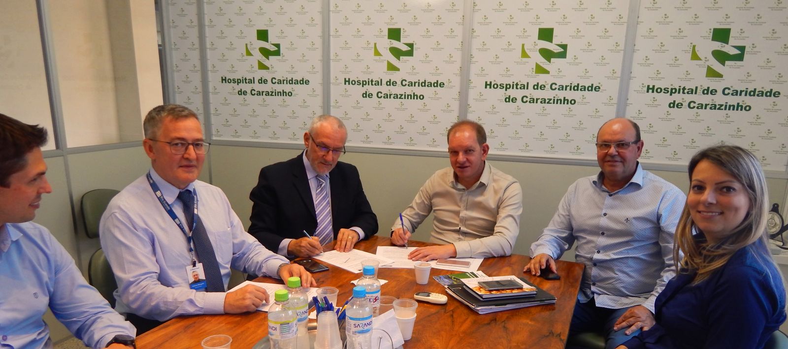 A Direção do Hospital de Caridade de Carazinho, firmou no dia de hoje (16) termo de cooperação financeira com o Banco do Estado do Rio Grande do Sul – BANRISUL. Estiveram presentes na formalização do termo, a Direção do HCC, o Superintendente regional do Alto Uruguai do Banrisul Sr. Jenio Galon e o Gerente Geral da agência de carazinho Sr. Valmor Margutti.