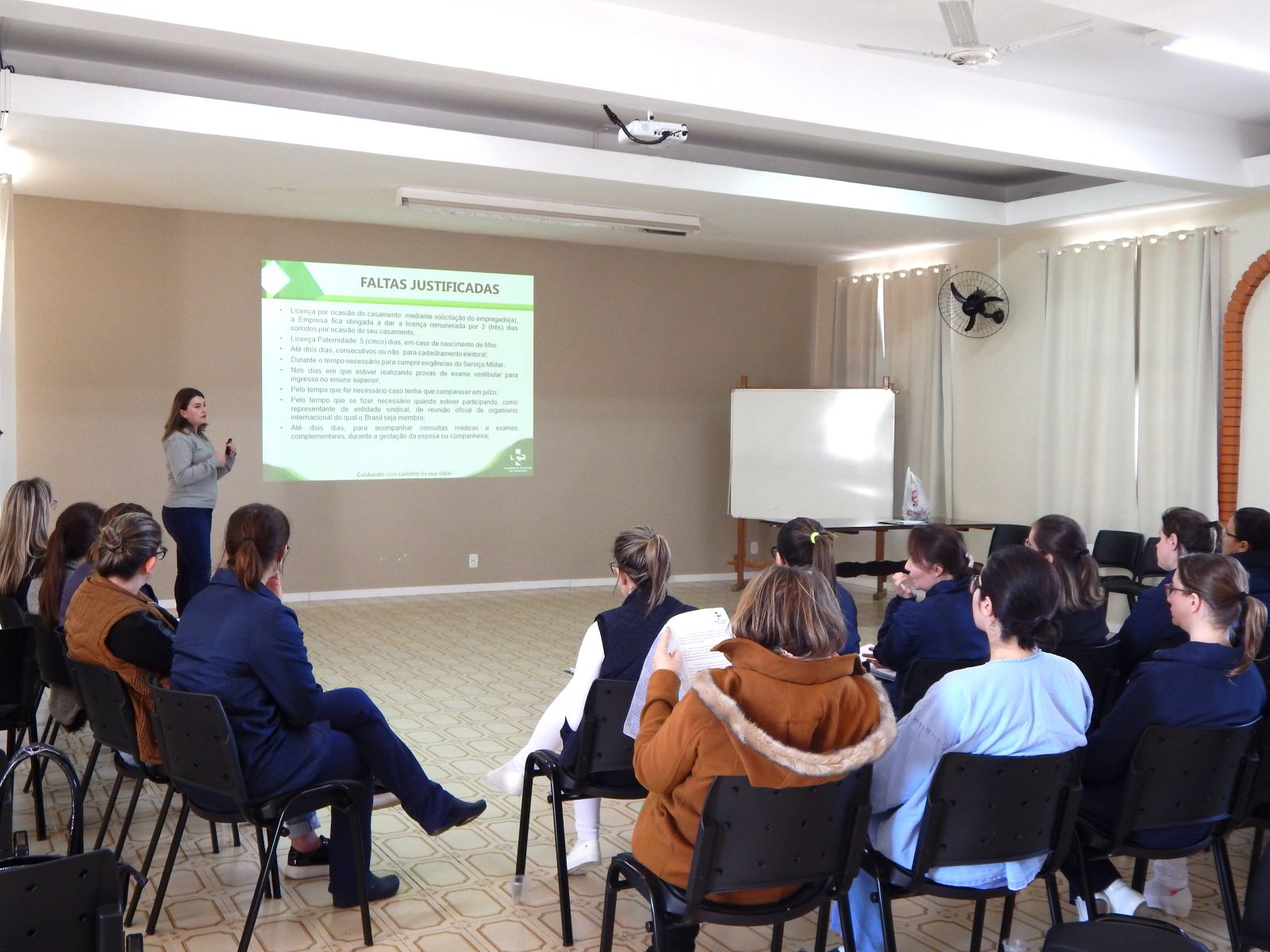 Durante a capacitação, inicialmente, elas ressaltaram a importância de haver um fluxo organizacional eficiente e apontaram a motivação dos profissionais como algo essencial nos diferentes setores, para que, assim, todos consigam cumprir seus papéis com excelência. Além disso, pontuaram os direitos e os deveres de cada função, destacando o papel que deve ser desempenhado, tanto pelo empregado, quanto pelo empregador.