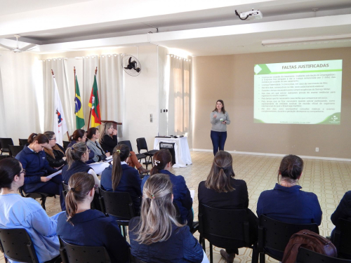 Orientados pela Gerente Institucional Larissa Giacomelli e pela Coordenadora de Recursos Humanos Sandra Papke, os funcionários puderam ouvir dicas de como melhorar o funcionamento de seus setores, além de tirar dúvidas sobre o gerenciamento de pessoal