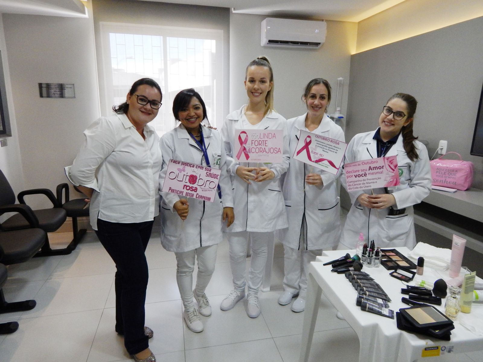 Além disso, ao ressaltar a importância dos cuidados com a saúde das profissionais da área da saúde, ela aponta a necessidade do autocuidado. “Geralmente, quem trabalha com na saúde, preocupa-se com o outro e esquece de se cuidar. Temos um grande número de mulheres que, por algum motivo, ainda não coletou o citopatológico esse ano, não consultou com seu médico, não fez o seu ‘check-up’. Muitas aproveitaram para fazer a coleta aqui, durante a ação do Outubro Rosa, o que é muito positivo”, afirma.