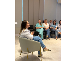 O evento de encerramento foi marcado por um momento de reflexão e valorização, com a palestra “Menopausa e a Saúde da Mulher”, ministrada pela Dra. Gabriela Piva Paim, além de uma sensível mensagem conduzida pela equipe de Psicologia do HCC.