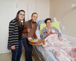 Com bombons e mensagens de carinho em mãos, os integrantes do Humaniza HCC visitaram as pacientes em seus quartos, com o intuito de desejar a elas um feliz dia e uma boa recuperação.