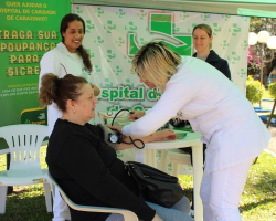 Durante a quarta-feira (24), na Praça Albino Hillebrand, as profissionais de saúde do HCC realizaram verificações de pressão arterial e transmitiram orientações aos carazinhenses sobre os cuidados com a saúde. Ao mesmo tempo, os colaboradores do Sicredi distribuíram panfletos informativos e explicaram o objetivo e o funcionamento da campanha à comunidade.