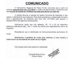 Leia maisAlteração do horário de atendimento no hemocentro regional de Passo Fundo